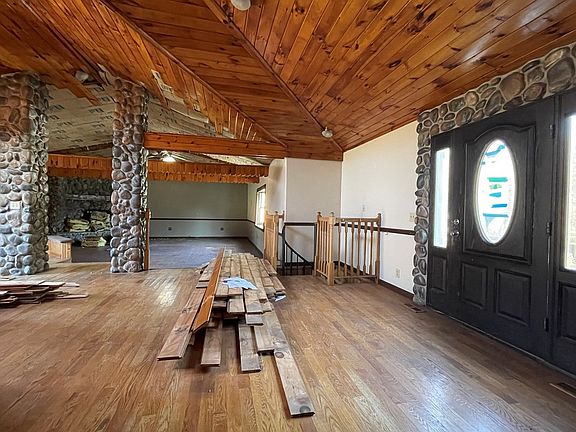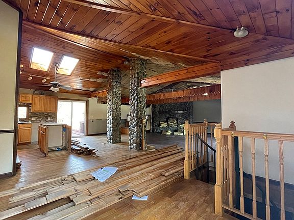 Sprawling Ranch w/ So Much Potential on 3.5 Acres!! This is Must See for Someone w/ a Vision. First Floor Living Space Includes Large Living Room w/ Vaulted Tongue & Grove Ceiling & Stone Gas Fireplace Open to Vaulted Kitchen w/ Granite Counters & Eating Space. Owners Bedroom has Vaulted Ceilings with Walk In & Full Bath (Large Soaker Tub, Double Vanity), 3 Additional Bedrooms, Main Full Bath & Laundry Room. Living Room Leads to 2nd Living Space & Office or 5th Bedroom & Sliders to Deck. Lower Level Has Bar Area & Living Space with 2nd Gas Stone Fireplace, Storage Rooms & 2nd Garage, AG Pool