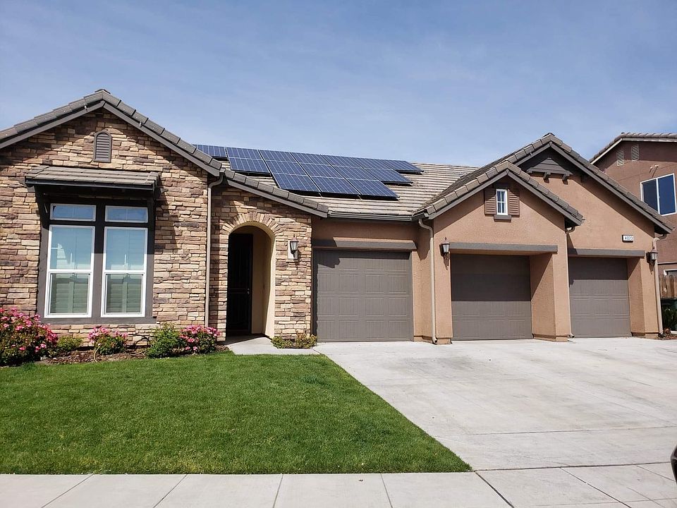 Beautiful Bonadelle home built in 2017. This is the Hudson Model. Home has 4 bedrooms, 3 baths and 3 car garage. Solar panels. Landscaped front and backyard with and a patio fan to cool down on summer nights. 1 year lease
