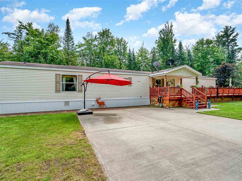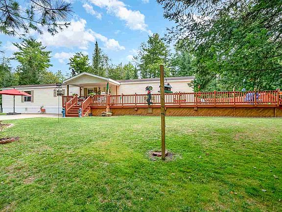 Serene Setting Is an understatement for this one Home sits on 1.15 Acres of wooded land and is irregular shape. The home owner has taken the time to sand and stain all of the rails and deck except for the section under the second covered porch in the back. New carpet and padding through out as well as some fresh paint. There are 3 sheds on the property 12 X 20 with a loft and 220 electric and new window, 12 X 12 workshop, and a 9 X 12 garden/storage shed any wood that needed to be replaced has been. Wrap around deck with covered area in the front and the back. Beautiful landscaping and a huge pile of split wood for all the campfires around the firepit. Several different fruit trees and tons of perennials complete the setting. Wildlife is abundant from the tiniest chipmunks to the large deer and everything in between adorn the area. Rifle river access at Pinnacle park for the tubing or kayaking enthusiasts.