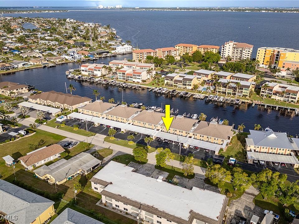 PRIME WATERFRONT LOCATION! This direct Gulf-access condo is filled with coastal charm and comes with its own designated boat slip. The 2-bedroom, 2-bathroom unit is tucked away in the popular Beach Parkway neighborhood, just one canal from the river. Enjoy all the benefits of the Florida lifestyle without the worries - as this corner unit did not have damage or flood intrusion from any of the recent storms. The condo is equipped with brand new impact-resistant windows in both the primary and guest bedrooms. Both bathrooms have been completely updated with brand new plumbing fixtures, vanities and toilets, plus newer tile in the primary bathroom shower. The unit has vinyl flooring throughout, a brand new water heater, and plantation shutters for the windows and sliding doors. It’s only a short walk to the riverfront Jaycee Park, plus you’re less than a five minute drive from downtown Cape Coral’s restaurants and shops, as well as the Cape Coral bridge. Reasonable HOA fees in this 55+ community.