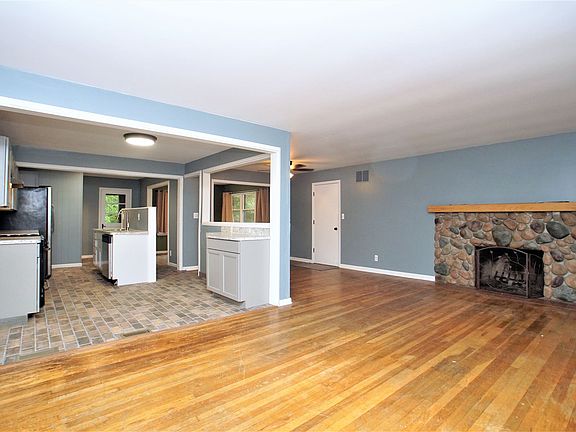 Come take a look at the 3 bed, 1.5 bath open concept home, sitting on approx. 1 Acre that is partially wooded. This home offers a living room with hardwood floors and woodburning river rock fireplace. Newly remodeled kitchen with new brick tile flooring, cabinetry, countertops & Island with stainless steel sink. Family/Sun room off of the dining room with new brick tile flooring. Remodeled half bath. Hardwood floors in all 3 bedrooms. Unfinished basement with 2 rooms partially finished. Could easily be finished for an additional 2 bedrooms.