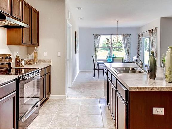 Under Construction. 1672 SF- 3 bedroom, 2 bath, 2-car garage backed up to a protected conservation area. This appealing one-story home includes many contemporary features. An open-concept design with 8'8" ceilings enhance the wonderful feel of this home. The kitchen includes a large island perfect for bar-style eating or entertaining, a pantry, and plenty of cabinets and counter space. The well-appointed kitchen comes with all appliances including refrigerator, built-in dishwasher, electric range, and microwave hood. The dining room and living room both overlook the covered lanai, which is a great area for relaxing and dining al fresco. The large owner's suite, located at the back of the home for privacy, can comfortably fit a king size bed, and includes an en-suite bathroom with double vanity, walk-in closet, and separate linen closet. At the front of the home, two bedrooms share a second bathroom. The two-car garage connects to the front hallway where the laundry room, equipped with included washer and dryer and an extra storage closet are also located.
