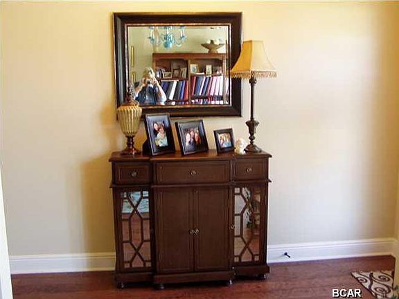 PLANTATION PARK-Popular Subdivision, great school zones. The Oakley Plan:Brick,3 bedroom,2 bath home with open kitchen, dining & living area that opens onto covered back porch.Home features raised ceilings,crown molding, hardwood floors,16'' ceramic tile & granite countertops in kitchen & baths, kitchen island, stainless steel appliances & wood cabinets. Split bedroom plan features large master suite with tray ceiling/crown molding & garden tub with window, separate tiled/glass shower, double vanity & large walk in closet too! Covered back porch to relax and enjoy cook-outs w/friends/family..Centrally located,very near New North Bay Haven Charter Academy,close to Tyndall AFB , shopping,& dog park.