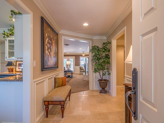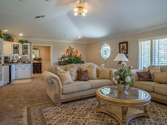 Bakersfield Country Club at its finest. Perched on an estate sized lot, this home is located on the 7th Fairway and offers abundant light throughout, spacious living areas, recently remodeled gourmet kitchen, elegant formal dining and living rooms, beautifully appointed master suite, large optional hobby/office/workout room, and a resort-like backyard with a salt water pool. The kitchen boasts granite countertops with tumbled stone travertine backsplash and travertine flooring. Included are high end stainless steel Thermador appliances (kitchen refrigerator included). The luxurious master suite has french doors overlooking the pool and offers a beautiful setting of crown molding and a gas fireplace. The master bath has granite, triple sinks, a jetted tub and glass block wall shower. This home as an owned solar system, two AC units, two hot water heaters, an oversize 2 car garage and built in carport. See attached description for further details of this spectacular property.