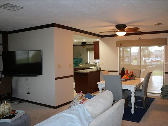 FULLY FURNISHED SEASONAL RENTAL This gorgeous waterfront property is available for your vacation stay! Over 1,500 sq ft of remodeled, upgraded space! Fully furnished 3 bed, 2 bath, 1 car garage home on a Deep Water, Gulf Access canal with a private dock for fishing or boating or just enjoying the outdoors. The living room features a fireplace and large flat screen tv! The kitchen has gorgeous wood cabinets and stone counter-tops, breakfast bar, stainless appliances and everything you can think of for your use! The master bedroom is a real retreat! Beautiful wood accents and a spa like master bath! The other 2 bedrooms are comfortable and roomy. The huge screened lanai is the place to be for morning coffee or evening cocktails! Lots of comfortable seating to lounge on while you watch the huge wall mounted television until it's time for the sun set show! The rent includes the water, sewer, trash, 1st $100/mo of the electric, cable and internet! You will not want to leave at the end of your stay!! HOA Application requires $100.00 fee
