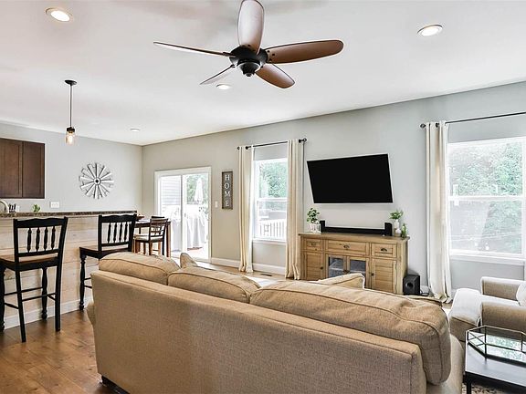 OPEN HOUSE SUNDAY 7/23/2023 1-3     Why build????  This 7 year NEW ranch is so much better than new, it sits on a fabulous lot backing to woods with a gorgeous composite deck, a patio with built in fire pit, a finished lower level with built in bar, kitchenette, surround sound, 4th bedroom, 3rd full bath and lots of big windows letting in tons of natural light, it's sure to knock your socks off!  The main level is wide open with spacious great room open to eating area and well equipped kitchen with large breakfast bar, pantry and SS appliances.  The primary bedroom is complete with an ensuite bath and walk-in closet.  Bedrooms 2 & 3 are serviced by hall bath. Just off the kitchen is main level laundry and 2 car garage.  Hurry, this home is move in ready, nothing to do but unpack and enjoy this well done 2300+ sq foot ranch in super convenient location.