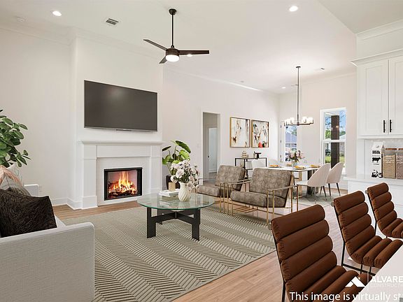 Estimated completion date: complete and ready to move in Nestled inside of Bedico Creek is a collection of neighborhoods surrounded by nature. Deer Trail Phase III, is Alvarez Construction's newest phase of new homes in Madisonville LA. Bedico Creek prides itself on being a community that strives to conserve and preserve, all while living a private and peaceful lifestyle within a gated community. Some features of Bedico Creek include miles of trails with beautiful wilderness views, natural wildlife habitats along hundreds of acres of lakes, parks and nature preserves, and a comforting horse fence backdrop lining the property. When you choose to live at Bedico, one lot buys you 500 acres of nature. The Conifer plan is a 3bed/3bath with bonus room two story home features open and spacious living areas with 12' high ceilings in living and dining areas. Adjacent kitchen with breakfast area features chef's island, WiFi smart appliances, gas cooktop, separate wall oven and walk-in pantry. Triple split floorplan affords all bedrooms and full baths are separate and private. Full-size utility room off garage. En suite master bedroom with wall of windows to backyard. Attached master bath with WC, walk-in shower, garden tub and oversized walk-in closet. Secure interior entrance from garage. Upstairs includes a versatile 14' x 11' Bonus Room that could act as a 4th bedroom or flex space. Front porch and courtyard-style back porch. Owner is Louisiana Licensed Real Estate Agent. Luxury Options : Exterior Ceiling Fan LV1 Hardwood: Rum (Entire House) LV2 Porcelain Tile LV2 Urban Tile LV2 Gourmet Kitchen w/ Vent Hood LV1 Quartz LV2 Urban Tile LV2 Shaker Style Panel Trash Can Pull Out Soft Close Doors and Drawers LV2 Matte Black Fixtures LV2 Cabinet Hardware: Black LV3 Matte Black Lighting Package LV2 Tiled Shower Closet Shelving in Primary Closet