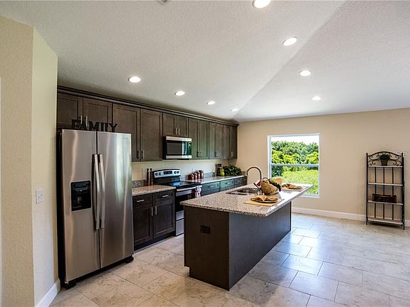 Brand new construction with over half acre of land and NO HOA in south Lakeland! This brand new block home offers 4 bedrooms, 2 full bathrooms and an open, spacious great room plan. Kitchen is open with living and dining areas. Beautiful shaker cabinets and granite counter tops in kitchen and bathrooms. Stainless steel appliances. Full master suite with dual sinks, large shower and walk-in closet. Split floor plan offers 3 bedrooms and hall bath separate from the master. There are sliding glass doors leading to the open, paved lanai. Indoor laundry room with washer/dryer hook-ups. Architectural shingles on roof. An enclosed 2-car garage finishes off this beautiful new home. Established neighborhood with NO HOA!