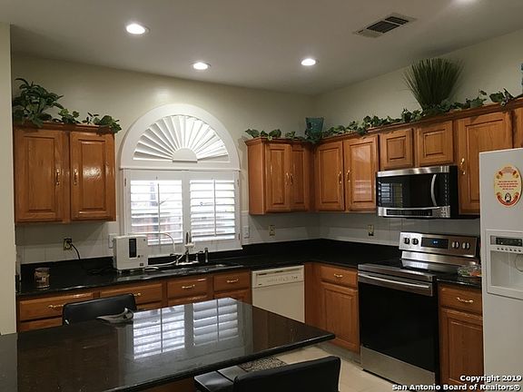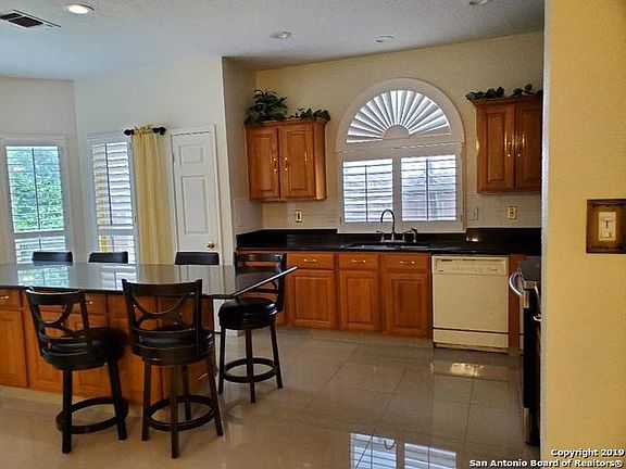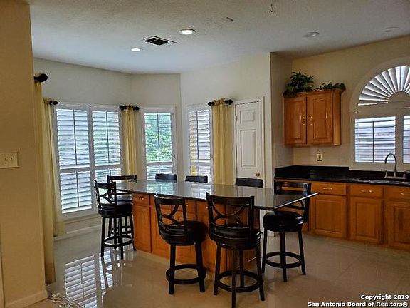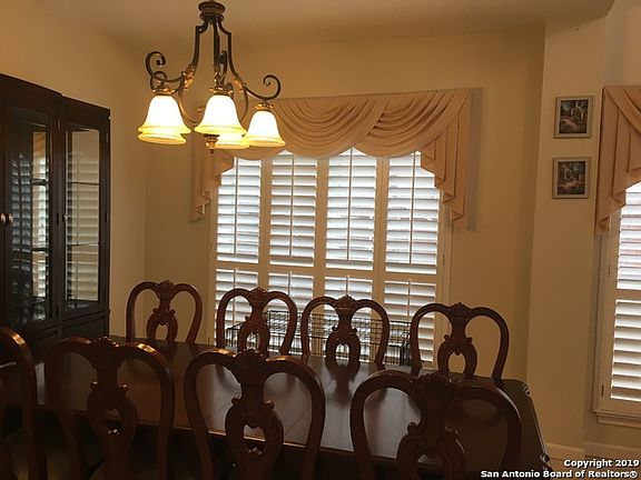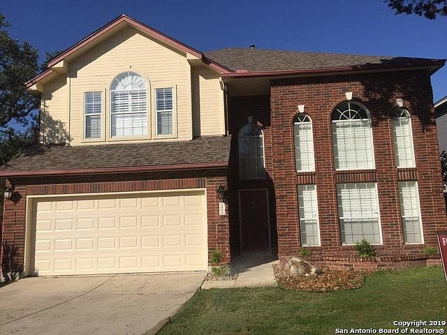 Well maintained 4 bedrooms, 3 baths brick home with high ceiling in Shavano Forest. Two living/dining areas with inviting fireplace in family room. Second bedroom and full bath down. 2 bedrooms with Jack and Jill bath.Island kitchen with granite counter top. Plantation shutter windows throughout the house. No Carpet. Beautiful chandeliers in formal dining and foyer. Backyard with mature trees and cover patio with ceiling fan. New roof (2 year). Sprinkler and water softener. Motivated Sellers.