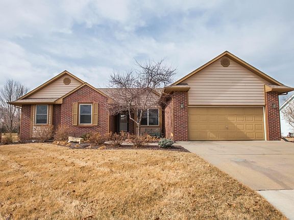 Lovely ranch in in Timber Creek located between Manhattan & Wamego! Manhattan schools. Newer deck w/ retractable awning in beautifully landscaped backyard w/ numerous flowered shrubs & mature trees that backs up to community park, pool & walking trail. Open living/dining w/ gas FP. Large kitchen w/ center island w/ access to deck. Main level laundry w/ access to a garage. Master BR has coffered ceiling & master bath w/ dbl sinks & walk -in closet. Two other same level bedrooms are spacious & convenient to full hall bath. Full mostly finished bsmt has wonderful FR w/ wood pellet stove, wet bar, bedroom, bath & storage! Front brick patio!