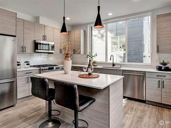 Price Reduction to $999,000! Last available unit in this stunning Wallingford project! Walk to Seattle Bouldering Project, the Burke-Gilman trail, Gasworks Park, and everything Wallingford has to offer. Thoughtfully placed South facing windows flood the home with natural light. Chef inspiring kitchen w/ quartz countertops, stainless steel Beko appliances, & custom Belmont cabinets. Lavish primary bedroom with spa-like bathroom & walk in closet. Gorgeous natural gas fireplace, CAT 5, & ductless minisplits provide energy efficient heating & cooling. Enjoy views of Lake Union, Mt Rainier, & downtown Seattle from your private rooftop deck. Attached garage w/ extra storage space. No HOA dues & 4 Star Green Built. Walkscore of 83 – Very Walkable
