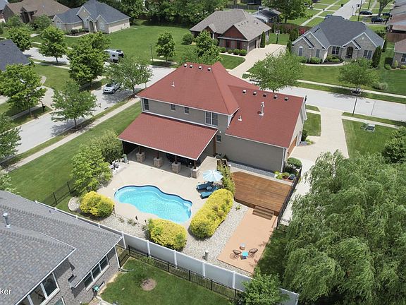 Welcome to 4024 Mulberry Row Way Located in the highly-desirable Monticello Parke Subdivision! This immaculate, well taken care of home features a Beautiful Inground Pool, 3 Bedrooms, 2 Full Baths, 2 - 1/2 Baths with a 2-car attached garage with a new cedar style garage door and positioned on a corner lot. Welcome guests into the two story Foyer which leads to the Formal Dining (currently used as a private office) & Living Room area are perfect for entertaining. The Living Room features a 3-sided gas fireplace, plenty of natural sunlight & an open concept into the Kitchen. The gorgeous Kitchen was just remodeled in 2018 w/ custom 42'' cabinetry, quartz countertops, new backsplash, with stainless steel refrigerator, electric range & hood. Real Hardwood (Villa Bocelli Frank Oak-Mombello) Floors were installed throughout the 1st floor in 2018. The 2nd Floor has a Large Primary Bedroom with an additional Sitting Area, Relax in the En-Suite Bath offering a large double sink vanity, whirl-pool tub, separate shower and enclosed water closet. Off of the ensuite bathroom is a large custom walk-in closet with additional storage behind the walls. Two additional Bedrooms, a Laundry Room & Full Bath completes the 2nd floor. The hardwood floors (Acacia Handscraped 9/16 x 4-3/4) on the 2nd floor were installed in 2019. The Basement is Finished with Built in Cabinets/Shelving and its own Tiki Bar! There is an additional 1/2 Bath and Utility Room for extra storage and the mechanicals. But the fully fenced backyard is what sets this property apart from the others in the neighborhood... This Oasis has Large Covered Porch with a 6' Deep Inground Swimming Pool and Outdoor Shower, separate Deck and Patio Area. The Owners has had Orkin Pest Control spray the inside and outside of the house for General Pest Control every two months for the past 10 years! They also have Nature Scape treat the lawn every 2 months to prevent weeds, etc. This home is close to downtown Jeffersontown, great shopping & restaurants. Schedule your showing for 4024 Mulberry Row Way today!!