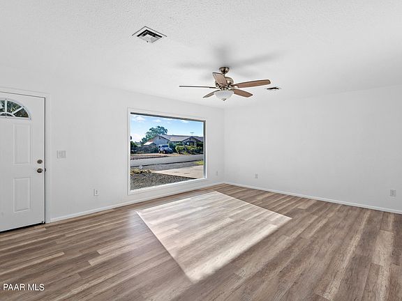Discover your ideal retreat in Prescott Valley! This 3-bed, 1.5-bath home with 1,616 sq ft offers a great layout, an AZ Room, and a stunning remodeled interior. New LVP flooring, carpet, neutral paint, and fixtures throughout. The heart of this home is the spacious eat-in kitchen, featuring gorgeous gray shaker cabinetry, quartz countertops, and stainless steel appliances. There's even a convenient breakfast bar for quick meals and an adjacent dining area for family gatherings. Three spacious bedrooms, laundry room, Plus, there's a versatile flex space that can be tailored to your hobbies. Enjoy the large fenced-in backyard and a 2-car garage. Perfect for a quick getaway from the Valley!