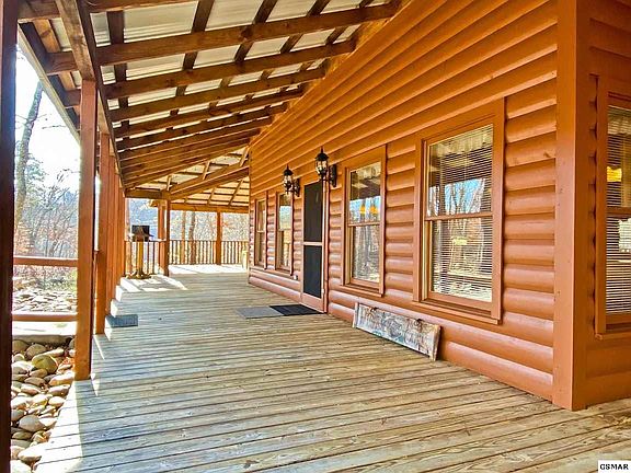 What an amazing home! Log look gives you all of the appeal of log construction but with the energy efficiency of frame construction. Open and airy and beautiful. The incredible stack stone fireplace goes from the lower level floor all the way to the ceiling of the second floor allowing this home to have FIVE fireplaces. Well over an acre of wooded privacy but only 5 minutes from downtown Sevierville. No HOA to bother you and this home can be a vacation home for your use only, or a residence. This property CAN NOT be used as a vacation rental because of City of Sevierville Zoning LDR (Low Density Residential) but you could use it as a long term rental. - It has EVERYTHING that you need! Sold fully furnished, take a look at these photos and the immersive virtual tour and you will see what all the fuss is about.