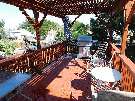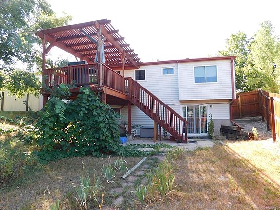 Great house with many NEWER big ticket items! WALK-OUT BASEMENT! UPGRADES!: All of the following are Newer: Vinyl siding, engineered/laminate wood floors, plantation shutters, windows, exterior doors, slider, ROOF & gutters, furnace, A/C, paint in Living room/hallway and bathroom, garage door and garage opener AND MORE! Extras you won't find in most of the other homes at this price: 2 CAR ATTACHED GARAGE, HUGE DECK WITH PERGOLA SLATS OVERHEAD, WALK-OUT BASEMENT, LARGE YARD, NEW A/C! Walk into a large living room with vaulted ceilings, 2 bedrooms up, one has private access to the bathroom. Kitchen has nice upgraded appliances. Eating space next to kitchen with access to the deck. BASEMENT: Large rec room, flex room, bedroom/bath and slider access to yard! Check out the yard: Huge shaded areas..the deck gets tons of shade too. Iris's galore, grape vines, BIG TREES! Shed stays! Great location:I-225, E-470, DIA, DTC, Light Rail, Southlands Mall, Anschutz Medical Center, Buckley AFB!