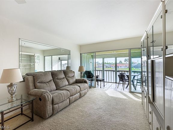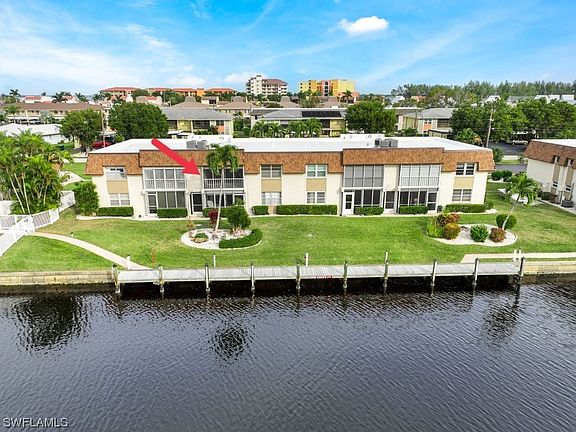 Direct Gulf Access Condo overlooking wide intersecting canal views & waterfront sunsets every evening! Welcome to The Anchorage located minutes from open water and walking distance from Jaycee Park. This 2 Bedroom 2 Bathroom 1,140 SF Condo comes with covered parking and large screened lanai overlooking the waterway. Large open kitchen with pass through to the dining area and living room. Expansive living room great for watching TV or dolphins and manatees out the sliding glass doors! Master suite and guest bedroom are generously sized, perfect for year-round or seasonal living. The Anchorage offers a community pool on the water and dock with first come first serve space. Located off Beach Parkway close to the Yacht Club and Cape Coral's only Beach, shopping, dining, and easy access to the bridge and Fort Myers.