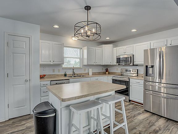 - Features: Walk-Out Access, Kitchen Island, Eat-in Kitchen, Wood Cabinets