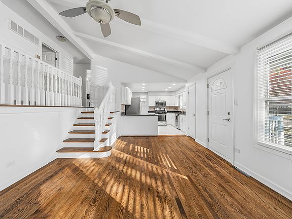 Welcome home to this beautifully remodeled, all brick Juliet Split in a prime Oak Lawn location, nestled within D123 (Kolmar) boundaries and literally just steps from St. Catherine of Alexandria School. From the moment you step inside, you'll be impressed by the vaulted ceilings, sun-drenched living room, and gleaming hardwood floors that create a bright, open, and inviting atmosphere. The main level features a spacious living room with a classic wood-burning fireplace and a newly renovated kitchen complete with granite countertops, a beautiful natural stone backsplash, updated cabinetry, and newer appliances. Upstairs, you'll find three generously sized bedrooms, all with gleaming hardwood floors, and a fully remodeled bathroom showcasing custom tile work, modern fixtures and faucets, and a sleek floating vanity with a ceramic top. The lower level offers a large finished family room with brand-new flooring, a second beautifully updated full bathroom, and a spacious laundry area with additional storage. Step outside to a large, fenced-in backyard - ideal for entertaining family and friends on warm summer evenings. The long side driveway provides ample parking and leads to a detached two-car garage. Additional highlights include fresh paint throughout, new light fixtures and ceiling fans, a brand new garage door with new opener and remote (with warranty), and some new windows. Conveniently located near top-rated schools, parks, shopping, restaurants, and more-this home truly has it all. Schedule your private showing today!