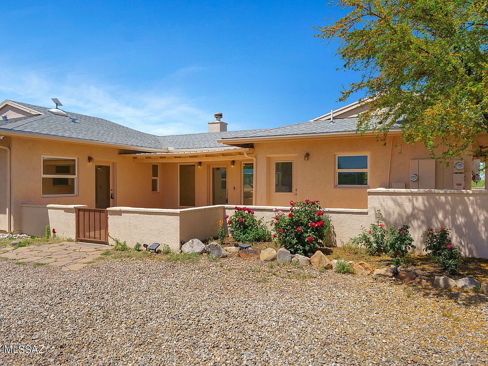 So many updates and improvements! Three bedrooms & three full baths. Fourth bedroom is used as office area. Reinforced foam block construction. Fresh paint inside and out. Spectacular mountain views from the front and side patios. Property is fenced with electric entry gate & has additional block fence for future pool area. Separate swim spa house is just a few steps from the primary suite. Kitchen has large cooks island and plenty of cabinet space. Concrete RV pad that includes electricity, water and sewer. Recently installed solar is owned! (Low heating and cooling costs) Security system is installed with cameras, lighting and monitor that is included. Oversized garage has third full bath. Plenty of space to enjoy the quiet life!