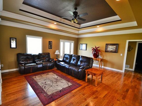 It's Here! Your dream home in the West Oaks. Beautiful custom home, built by Ty Romeo, offers 4,300+ sq. ft of total finished living space with an open concept & split bedrooms. Fully equipped kitchen- ample custom cabinets, granite countertops, 2 pantry areas and island/bar. Spacious master bedroom / luxurious bath and purposeful laundry room on the 1st floor. Check out the built-ins and ceiling in the living area! Hardwood flooring flows throughout. 3 additional bedrooms (carpet), 2 baths, and an office complete the main living area. Unique finished walk-up basement with an open concept and plumbed 4th bath. Trane fresh air intake system. Unfinished areas in basement add to the abundance of storage throughout. 2nd floor has its own HVAC system.