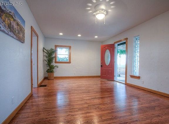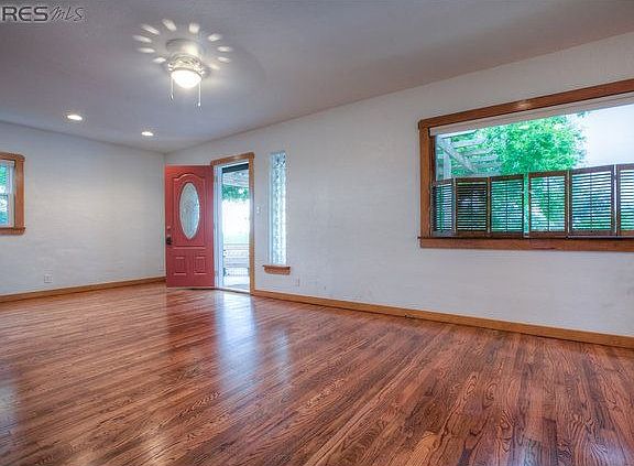 What a darling place to call home! This precious Ranch sits on 1 acre illustrating the perfect country oasis. New oak cabinets, natural wood floors & lovely kitchen bay window w/panoramic views of country sides & colorful gardens. Stay cool w/a/c or enjoy a sunset on the sheltered pergola. Fenced & irrigated yard welcomes pets & small livestock. Detached garage & shed provide storage. Only 15 min to Greeley & FTC.