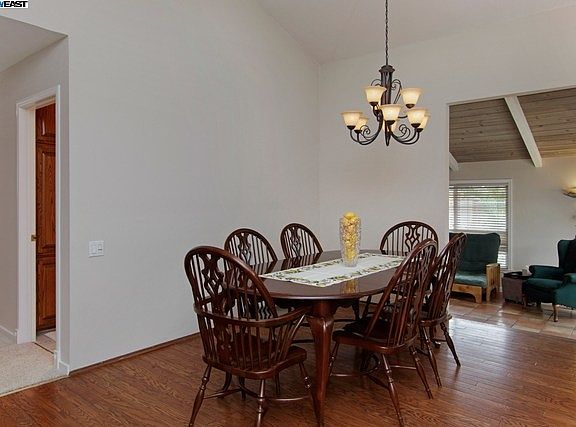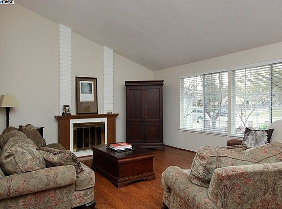 Lovely home features vaulted ceilings in living areas & master bdrm., lots of windows for natural light. Freshly painted interior/exterior, new carpet in bdrms, wood floor in lvg. rm. Beautiful landscaped backyard. Located across from open area. Community pool, tennis & park.
