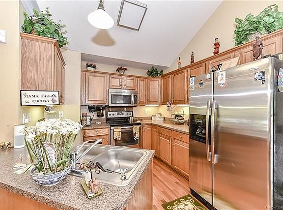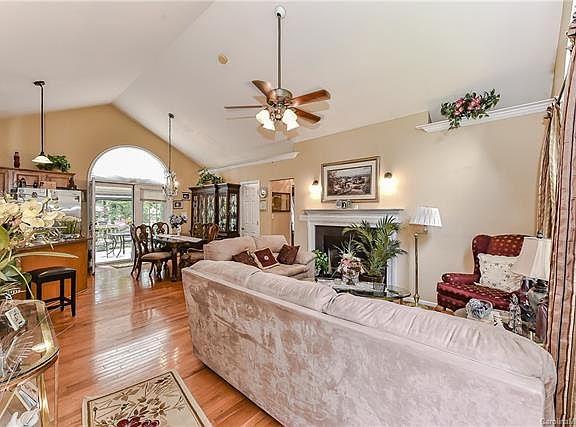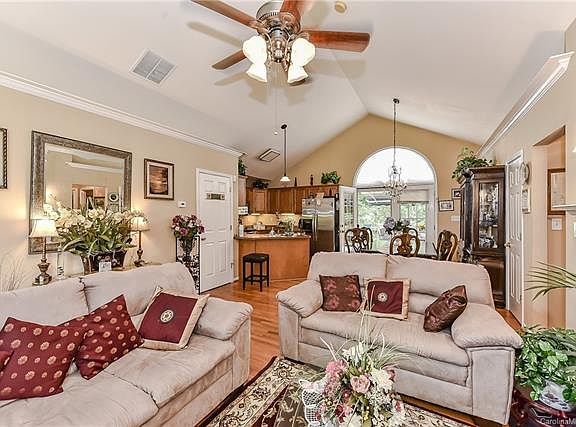 Adorable and well maintained ranch living with basement home on wooded private lot overlooking neighborhood pond. Open floor plan features hardwood flooring, vaulted ceilings, lots of windows for natural light and fireplace. Split bedrooms. Office, Recreation Room, or Craft Room in basement. Owners Suite with hardwoods, walk-in closet and private bath with Garden Tub and stand up shower. Sliding doors lead to private deck overlooking pond. Convenient and quiet location nearby to shopping, grocery, medical and I485. 2-car garage with sink. Storage space. Shed. New h/w heater and microwave. A gem for this price.