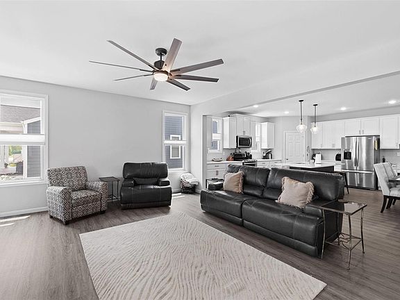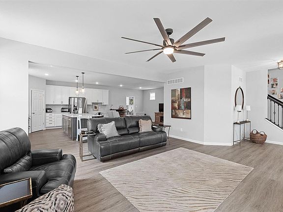 WHY BUILD when you can own this 1+ year old 2 story w/3 car rear entry garage featuring all the popular amenities? Open concept floor plan w/9' ceiling on main level. Lots of recessed lighting + transom windows added for plenty of natural lighting! Designer kitchen featuring 42-46" white cabinetry w/crown molding. Contrasting Center island w/Bk Bar overhang + sink! Gorgeous QUARTZ countertops! Planning desk & pantry! Upgraded SS DBL oven w/5 burner gas cooktop, DW & Blt-in micro. Main Floor Landry w/sink + cabinets! Powder Rm! Luxury vinyl plank flooring thruout main level! Spacious 2nd floor master suite w/luxury bath offering separate soaking tub/shower, adult height DBL wave bowl vanities + walk-in closet! 3 more bedrms & hall bath complete 2nd floor. 9' pour Lower level offers plenty of extra living space w/huge family rm + 3rd full bath. Dual HVAC! Arch Roof! Inground sprinkler system! 75 gallon HWH! Good sized partially fenced-in yard w/Lg patio! Walk to Lazy River Pool & parks!