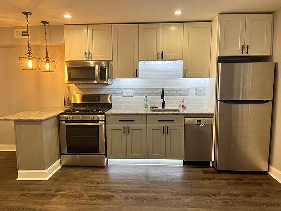 Just renovated, fully upgraded modern apartment with private entrance! All new kitchen, including: stainless steel appliances, granite countertops, dishwasher, garbage disposal, modern kitchen lighting, and backsplash. Hardwood floors throughout. Carpeting in bedrooms. Modern fixtures and recessed lighting. New washer and dryer in unit. New heating and central air system. Modern and efficient. New windows. Fabulous location. Close to a wide variety of various restaurants, stores, and everything else you could need. And a Wawa :) Don't miss your chance at one the nicest apartments in Drexel Hill at a great price. Lease is not managed through Zillow. Details will be shared separately.
