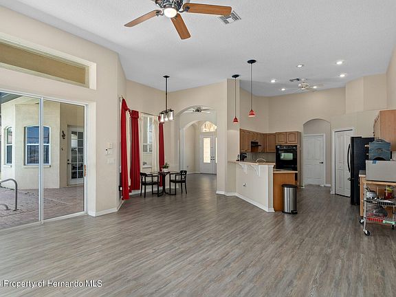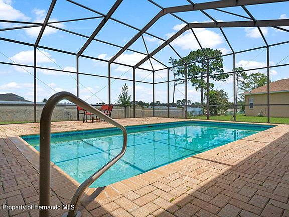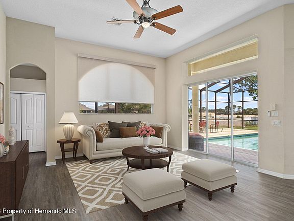Gated Community with LOW HOA fees & NO CDD!! You have to see this 4 bedroom, 3 bathroom, 3-car garage POOL home in Pristine Place, the jewel of Spring Hill. NO FLOOD INSURANCE REQUIRED! Walk into this open floorplan home with high ceilings all throughout. SAVE ON YOUR ELECTRIC BILL!! One Solar Panel designated for the pool & other Solar Panel for the water heater. This is an entertainment home on an oversized lot. Living Room & Den to accommodate large furniture. Master Bedroom is HUGE with access to your back patio and pool area. Pristine Place offers an abundance of amenities for residents to enjoy. Take advantage of the community pool, tennis courts, playgrounds, and fitness center, ensuring there's always something to do. Very easy access to the Suncoast Parkway for a drive to Tampa, St Pete, and Clearwater. BACK ON THE MARKET! BUYER NEVER HELD INSPECTIONS!