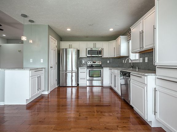 Welcome Home to Breckenridge Meadows! This ranch style home offers 3 bedrooms, 3 full baths, 2 car-garage and a full finished basement. This home features hardwood flooring, in the great room, foyer & kitchen, the kitchen is bright with white cabinets, higher end granite, a tile backsplash and many window filled walls in the eat-in area as well as a brand new refrigerator and microwave. The finished basement is set up to entertain with a bar, pool table area and family room. There is a full bathroom and an office/fitness room in the basement that can be used as a possible guest bedroom with no window. Enjoy grilling this summer on the patio that looks out to the large back yard. The master bedroom features a vaulted ceiling, a master bath with double sinks and large walk-in-closet. Close to shopping, restaurants and hospitals. HVAC system is only two years old.