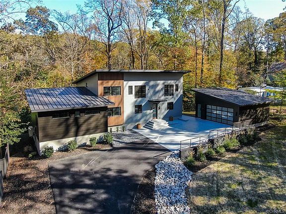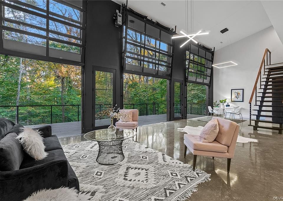 Perched upon the crest of a Southampton ridge above a peaceful and meandering creek, this modern retreat home feels a world away from it's Richmond City address. The modernist design with massive glass doors that open at the push of a button to fully engage the outdoors and furnish expansive views of the wooded valley below, will provide you with a natural sanctuary and respite just minutes from downtown. Meticulously curated interior finishes and wood-free exterior afford a sophisticated modern yet low-maintenance ownership experience. The expansive and open-concept chalet floor plan with massive vaulted ceilings and polished concrete floors seamlessly combine 21st-century cutting edge technology with timeless design elements. Other notable features include a finished and conditioned 2+ car garage, custom walnut designer kitchen, presentation style wet-bar, linear gas fireplace, enormous first-floor master bedroom suite with curbless shower and private elevated deck. This home must be seen to be truly appreciated. Just completed and ready for immediate delivery so you can enjoy spring days alfresco with the glass doors wide open!