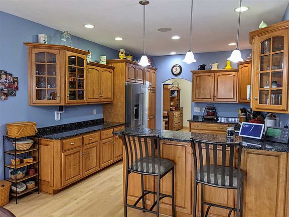 Located just minutes from Oshkosh and Omro, sitting on top of a hill offering country views you'll find this custom all brick split 3 bedroom 2 1/2 bath ranch. Features too numerous to list include trayed 9' ceilings to maple hardwood floors to the sunken Great Rm with a full brick FP for those upcoming cooler nights. Kit w/top of the line appliances and a much desired walk-in pantry. The MBR suite offers a heated jetted tub w/a spacious walk-in closet. The huge exposed bsmt w/heated flr also has a patio door leading to a brick patio w/a raised fire pit, park-like back yard and large deck.