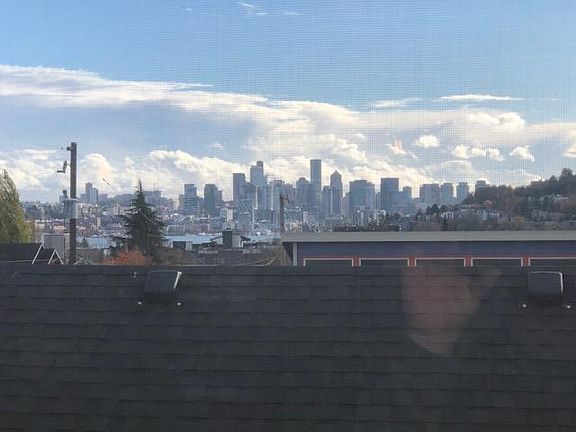 Quiet 1 bedroom with great view of city 40th and Midvale. 1 block off Stone Way. Close to just about everything. New fridge and dishwasher. Parking! 50.00 per person for water,sewer and garbage.