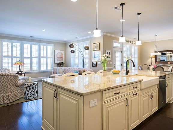 Located in one of the most convenient neighborhoods in the entire Triangle, this luxury home has so much for every buyer to love. Enormous granite island, light kitchen that opens to family and dining, overlooking a private view of your backyard. Master has his & hers closets, dual vanities and soaking tub. 3 bedrooms upstairs plus a bonus with beautiful built-ins and full bath. Home office/formal dining + a loft. HOA maintains exterior upkeep and storage on both sides provides ultimate noise reduction.