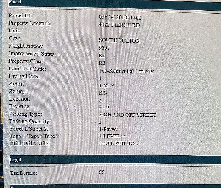 This listing is for the sale of the lot and a burned out house on the lot. The lot is 1.6873 acres and consists of 2 lots, one behind the other from paved street to paved street. The house on the lot burned and needs to be demolished. Some salvage may be possible. There is a fair amount of debris in the yard that will also need to be removed. The price of the lot and burned out house, as it sits, is $1,100,000. An estimate on removal of the house has been acquired at approximately $10,000, not including the additional debris in the yard. Offers can be sent by email to pickerscoop@gmail.com. The address of this home is 4025 Pierce Road South Fulton, Georgia https://www.google.com/maps/place/4025+Pierce+Rd,+College+Park,+GA+30349/@33.5958818,-84.5200642,3a,75y,5.89h,90t/data=!3m7!1e1!3m5!1sFMg7ChCoslGu3jZXynpU9g!2e0!6shttps:%2F%2Fstreetviewpixels-pa.googleapis.com%2Fv1%2Fthumbnail%3Fpanoid%3DFMg7ChCoslGu3jZXynpU9g%26cb_client%3Dmaps_sv.tactile.gps%26w%3D203%26h%3D100%26yaw%3D5.8944173%26pitch%3D0%26thumbfov%3D100!7i16384!8i8192!4m5!3m4!1s0x88f4e3fd25c9e959:0x21b278197b06d0ee!8m2!3d33.5963348!4d-84.520048