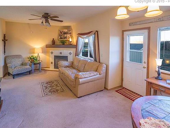 This lovely 2-story home conveniently located near Peterson & Shriever AFB off the Marksheffel and Powers corridors. Close to schools, neighborhood park, shopping, golf course, theaters, & restaurants. Great mountain view from front entry & front yard. Bright open main level w/vaulted ceilings and 3 bdrms on the upper level. Easy care front yard professionally xeriscaped and ready for your enjoyment. Large back yard w/storage shed and room for the kids and puppies. Kitchen equipped with lots of counter and storage space. Refrigerator, washer & dryer all stay. Over-cabinet lighting and exterior landscape lights all stay. Security system is included but buyer would need to set up an account with the provider. Carpeting needs to be replaced. Will negotiate with acceptable offer. Great home for under $200K. Don't miss this gem!