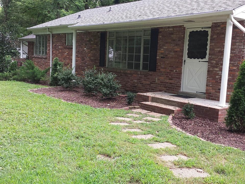 Three bedroom, two bath ranch style brick home with a large shaded lot. Large windows with views of green trees from every room. One bathroom has recently been remodeled. Located in a low traffic, safe neighborhood ideal for a joggers and cyclist. This duplex is pet friendly. It has hardwood floors and a spacious patio overlooking the large yard. Washer and Dryer connections in a full-size basement perfect for exercise or game room (pool table, ping pong table, etc.) with lots of space for storage. Ride your bicycle right into the basement for convenient storage. $1650 Flexible lease options. Lawn care and water provided. Municipal Trash pick-up-at-door service. Electric and Gas paid through owner.