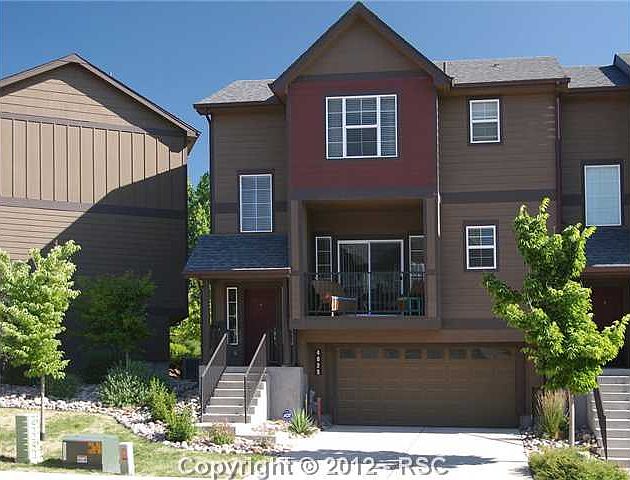 Beautifully maintained townhome in an extremely sought-after west side location. The main level boasts an open concept living area with gas fireplace, while the kitchen includes abundant cabinets and counter space, matching black appliances, a breakfast bar, and tile counters and floors. An adjoining dining area walks out to a covered deck- perfect for everyday living, as well as entertaining. Walk upstairs to find 3 large bedrooms, including a gorgeous master suite with double doors and a spacious master bath. The lower landing includes under stair storage, the mechanical room, and an oversized two car attached garage. Minutes from Garden of the Gods, shopping, and restaurants, and backs to Sinton Trail with easy access to biking and running- an outdoor enthusiast's dream location!