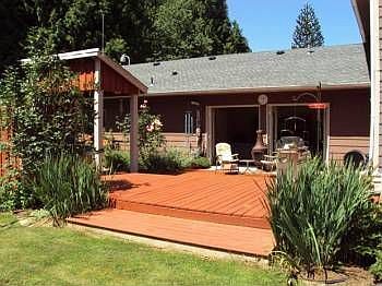 Refined Country Living at its Finest. Enter private road into this quiet retreat. 5 dry acres, 4 acres could be horse pasture. Home is outside Blaine city limits but is on city water. Blaine school system is excellent in academics, music, and sports. Blaine is right on the US/Canadian border between Seattle and Vancouver, BC near Bellingham. Garden areas with pond, fish and water features. Fruit trees and berry vines. Watch deer, squirrels and birds in the area. Open floor plan includes kitchen dining room and formal dining room. Entertaining spacious back deck with jacuzzi through two double French doors. Outbuildings include huge shop, a one-room out building with electricity and water that hosts RV hookups. Master bedroom fills entire upstairs. Energy efficient home.