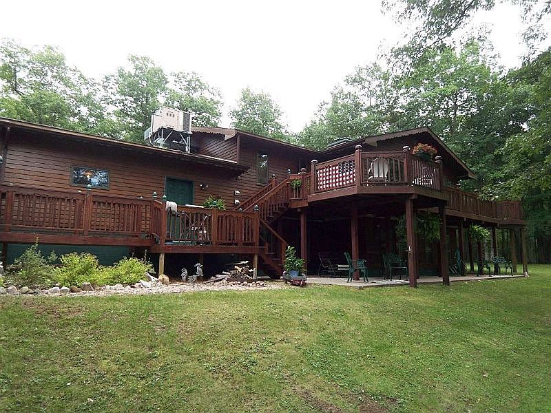 Immaculate custom built Redwood sided home nestled in 3.29 +/- acres of wooded land, across the road from lake Ellwood. Just mins. from Iron Mtn., MI. Main floor (1,424 sq. ft.) - custom built butternut kitchen cabinets, unique brick archway with antique reproduction cook stove, island, newer counter tops, fixtures, stainless steel refrigerator and stove. Newer Anderson window and door. Newer hardwood flooring in living room, master bedroom has newer hardwood flooring and T&G ceiling (beautiful), newer flooring in 2nd bedroom, freshly painted cupboards in main floor laundry room and newer top load washer, newer counter top in full bath, light fixture, six panel doors, attic central air conditioning, lots of storage, and all exterior walls on main floor have insulation, drywall and T&G. Total main floor and basement is 2,703 sq. ft. Attached two car insulated and dry walled garage (24x24). A deck all the way across the back of the house overlooking a spectacular view that changes everyday! Partially exposed, fully finished walkout basement (1,344 sq. ft.). Family room has hand picked field stone fireplace, 3 bedrooms - two are larger with nice size closets, (one has new T&G ceiling), and smaller bedroom with closet, den, full bath with updated sauna, cedar lined storage area (7x13) and furnace room has new natural gas boiler. Newer roofing on house and garage. Newer custom built detached garage (finished in 2010) 28x40 (16x28 workshop insulated and plywood walls) and 24x28 (one stall with work area) insulated and dry walled. Under the workshop is a partial basement 16x28 storage area for canoes, ATV, garden tools and wood. Numerous fruit trees (pear, cherry, apple and plum) along with beautiful flowering shrubs and professionally landscaped. close prox. to rivers, lakes, hunting, fishing, swimming, golfing, ATV and snowmobile access and the Spread Eagle Barrens (State Land). A MUST SEE!!