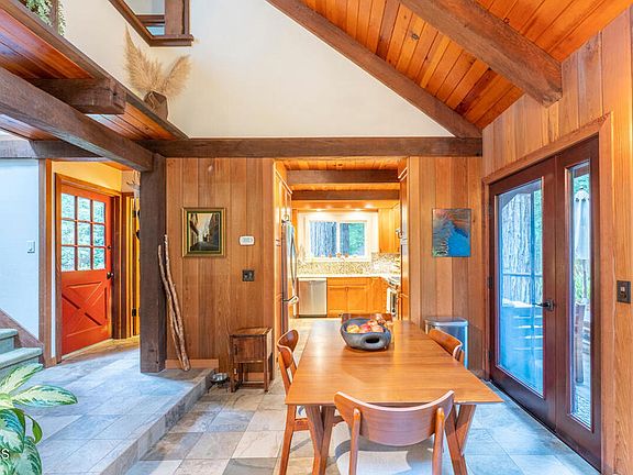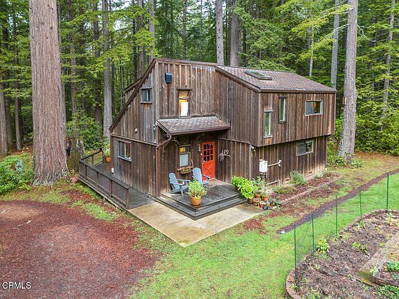 Conceived by renowned Mendocino architect David Parker Clayton, this alluring 2-bedroom, 2-bathroom retreat underwent a loving restoration in 2010 and 2013, followed by recent exterior and electrical enhancements. When you arrive, you are greeted by a majestic ring of redwood trees and exquisite Brazilian Ironwood decking adorning the front and back entrances. The airy open floor plan and high ceilings harmonize with the loft-style primary suite upstairs, fostering both spaciousness and intimacy. The second floor walk-in closet / laundry room had a new Kenmore washer and dryer installed in 2020.A well-appointed kitchen awaits the culinary enthusiast, boasting ample high-quality cabinetry, stylish granite countertops, and a captivating tile backsplash that complements the gleaming stainless steel appliances. Gather loved ones around the Vermont Casting wood stove in the living room, its catalytic converter ensuring a warm and cozy ambiance. A Bryant 96% efficient propane furnace installed in 2013 further enhances the home's energy efficiency. Indulge in the luxurious comfort of radiant heat under the tile flooring in both bathrooms along with spacious tubs and in-wall electric heaters. Two skylights and Dual pane Milgard windows installed in 2013 provide abundant natural light, while the exquisite stained glass windows in the bathrooms add a touch of elegance.A versatile detached garage, currently utilized as a music room and storage space, features a new electric box and an existing water conduit. Recent upgrades include french drains, new roofing on the 5000-gallon water storage tank and pump house, and the ability to power the house with an external generator. A concrete pad near the garage is perfect for such a generator or wood storage, and a garden bed and greenhouse await your horticultural pursuits. A 500-gallon propane tank, included with the sale, provides maximum flexibility in choosing propane suppliers. Venture just across the road and discover easy access to miles of walking trails (some of which lead to the enchanting Big River) perfect for immersing yourself in nature or foraging for Chantarelles, Boletes, and Porcini mushrooms. Embrace the opportunity to own a home ingrained with the captivating essence of Mendocino Coast living.