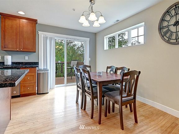 Privacy in the city! OPEN FLOOR PLAN 3bd/2.75 bathrooms. 4 homes in HOA. Kitchen has granite counters, stainless steel appliances, laminate flooring and windows to make it bright inside. BBQ Deck off kitchen/dining area. Master Bedroom with walk-in closet and full bath. Downstairs you will find new laminate flooring throughout bonus room with added granite wetbar. Additional deck off of bonus room. Extensive stamped concrete patio, fenced back yard with private green area. Oversized garage!