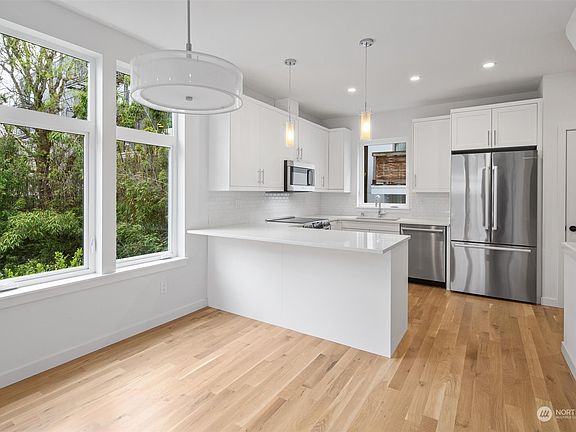 New High Quality Craftsmen home in Wallingford. Walk to all the restaurants, Breweries, Coffee, groceries & Burke Gilman trail. Home features lots of wide plank hardwood floors, craftsmen doors & millwork, spacious living & dining, Gourmet kitchen with painted shaker cabinets, Bosh stainless appliances, tile back splash Quart counters & undermount sink, Pantry, main floor powder room, 3rd floor with hardwood stairs & hallway, Master bedroom w/Elegant tile bath, spacious walk-in closet & walk in Laundry room. Large roof deck w/some city & Queen Anne  views. Entry level features 2 Bedrooms & tile bath. Nice big Storage area for Bikes & gear,  Mini-splits for heating & cooling & electric radiator. EV charging station ready.