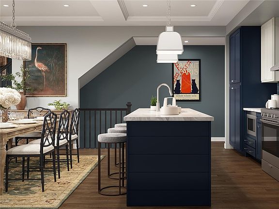 Rare limited-edition townhome in Hastings with a main floor bedroom and one of only five sky decks in the neighborhood. Enjoy a private outdoor retreat steps from the neighborhood green. The classic red brick front entry opens to an airy main floor with 9’ ceilings, 8’ doors, and an open-concept layout. The great room flows into the dining area and chef-inspired kitchen with quartz countertops, tile backsplash, grey cabinetry, and a stained island with seating. Upstairs, the primary suite offers a walk-in closet and spa-like bath, joined by a second bedroom with its own walk-in closet and en-suite bath. An expanded gallery leads to the sky deck—perfect for relaxing or entertaining. Located on tree-lined streets, enjoy local favorites like OTB Bicycle Cafe, Recon Brewing, and Mindbody Yoga + Barre.