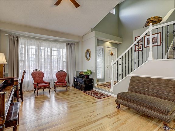 Come fall in love with this gorgeous updated five bedroom, four bath home nestled in a quiet cul-de-sac! Come inside and you're greeted with abundant natural light, solid hickory floors and a wrought iron staircase. The eat-in kitchen is a cooks dream with stunning maple/white soft close cabinets, granite counters, subway tile, gas cooktop, Samsung stainless appliances, large farmhouse sink and pantry. Cozy up on those chilly fall nights next to the wood burning fireplace in the family room that is wired for surround sound. The master suite has vaulted ceilings and a stunning five-piece master bath with a deep claw foot soaker tub, updated glass shower and updated lighting. Notice the unique accent wall and barn style door made from reclaimed wood from a nearby barn in Thornton, given a second life in this beautiful design. Upstairs you will also find a second updated full bath and two additional bedrooms. One bedroom currently serves as a home office with hardwood floors and well-designed built-in storage and shelving unit and can still serve as a bedroom. In the finished basement you will find a bathroom and two more conforming bedrooms, along with a family room that boasts a wall of built in storage and shelving with counter space for all your modeling, puzzling and crafting needs. There are loads of closets and storage around every corner. Laundry is conveniently located on the main floor as well as a powder room. Great curb appeal and beautifully landscaped with a sprinkler system and play structure for kids to enjoy. Make this home your own and drink your morning coffee on the wonderful front porch! Enjoy easily accessable trails and parks in neighborhood. Walking distance to elementary. New roof with high wind and impact resistant shingles 2019. New smart garage door opener. Electrical sub panel in garage. Water softener and water filter included.