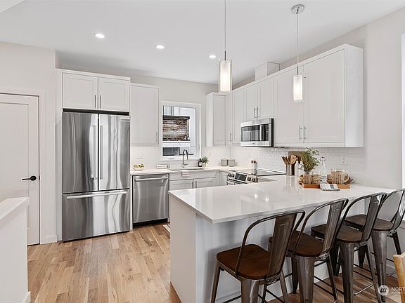 New High Quality Craftsmen home in Wallingford. Walk to all the restaurants, Breweries, Coffee, groceries & Burke Gilman trail. Home features lots of wide plank hardwood floors, Tall ceilings, craftsmen doors & millwork, spacious living & dining, Gourmet kitchen with painted shaker cabinets, Bosh stainless appliances, tile back splash Quart counters & undermount sink, Pantry, main floor powder room, 3rd floor with hardwood stairs & hallway, Master bedroom w/Elegant tile bath, spacious walk-in closet & walk in Laundry room. Large roof deck with Space Needle & Lake Union views!! Entry level features 2 Bedrooms & tile bath. Slider to deck ,Storage area for Bikes ,Mini-splits for heating & cooling & electric radiator. EV charging ready
