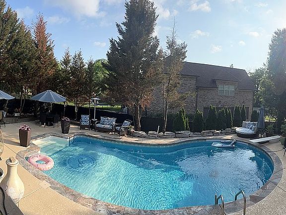 This 2 level home boasts everything, including a large custum built in pool with all the extras!! Thru the double door mahogany entry, is an open floor plan boasting 26 foot tall ceilings. Every entry way and window displays custom wood decor and custom trim work. The great room off of the 2 story foyer displays floor to ceiling custom windows and moldings.The fireplace in the great room is made of stone with a double mantle that is also floor to ceiling. The kitchen is extra large with all stainless steel appliances with custom granite tops. A custom butcher block made of custom cabinetry is in the center with 2 stools. The kitchen is a joined with a gathering room, making the kitchen even larger. There are 13 custom windows in the kitchen/ gathering room with custom fit blinds. The front den/ office is complete with a triple tray ceiling, double window and ceiling fan. This room joins a coffee nook with cherry cabinetry and granite top. The master suite is large with an out cove large enough for a sofa with 6 windows/ custom blinds. It also boasts a triple tray ceiling with ceiling fan and high hat lighting.The walk in closets are complete with custom shelves, for clothes, handbags and shoes. The master bath has a Tourette ceiling, a jetted whirl pool tub, double vanities for her and him on each side and a walkin glass shower. The toilet and linen closet is in a separate room. The dining room is open to the foyer with rounded large entry ways and custom moldings. There is a stair case off the dining room and a stair case from the gathering room that meet in the middle and lead to second floor.there is a cat walk from the foyer to the attic on 1 side and 3 bedrooms to the other. There are 2 full baths including a jack and Jill bath.there is a large bonus room upstairs that is equivelant to a double car garage. Their is a covered porch on the front and a patio out back door. There is a second patio in yard. Complete with estate fencing and attached triple car garage. There is a second refrigerator in garage. New central air unit upstairs.