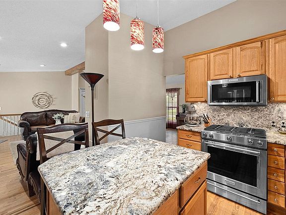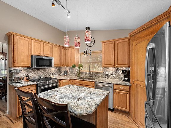 Stunning, updated 3-bedroom, 3-bath ranch home that combines luxury with comfort. Soaring vaulted ceilings, gleaming hardwood floors that run throughout the main living areas. Great room features a cozy wood-burning fireplace w/elegant can lighting. Kitchen is a chef's paradise, boasting outstanding custom cabinetry, beautiful granite countertops/backsplash, high-end s/s KitchenAid appliances, center island, walk-in pantry & separate dining room. Three spacious bedrooms & two updated baths with custom tile work. Descend to the walk-out lower level, where you'll find an incredible custom wet/wine bar w/ granite countertop, making it the perfect spot for entertaining. Expansive family room/rec room provides additional living space, a full bath and ample storage options. Step outside to your backyard oasis featuring a large above ground pool, hot tub, 2 maintenance free decks, gazabos, 2 patios & 2 koi ponds, one in the front & one in the back, adding a touch of serenity to your home.