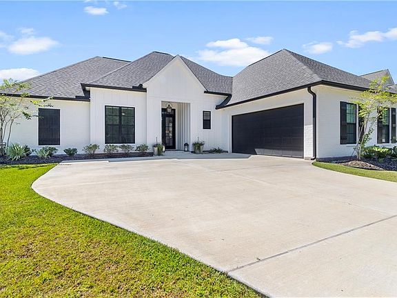 Act fast and buy your dream home priced less than new construction and with the added bonuses of window coverings, a security system, gutters and a privacy fence! This stunning 4-bedroom plus office residence is just a year old and better than new boasting quality construction with modern finishes throughout. The location of this home offers easy access to both the towns of Madisonville and Covington, making it ideal to enjoy the abundance of activities and amenities both towns have to offer. The open floor plan invites natural light and offers a seamless flow between living spaces, perfect for entertaining or large gatherings. Enjoy the luxury of high ceilings and warm real wood floors. The spacious primary suite feels like a private retreat offering a spacious room, huge walk in closet and a lavish bathroom. At the heart of the home is the huge kitchen offering an oversized center island with ample storage making meal prep a breeze. The stunning Quartz countertops provide a sleek, modern look, while custom cabinets adorned with under-cabinet lighting add warmth and sophistication. With four spacious bedrooms each having direct bath access and custom built-ins in closets, there is luxury for everyone. The laundry room is generously sized and offers a quartz folding counter and great storage.